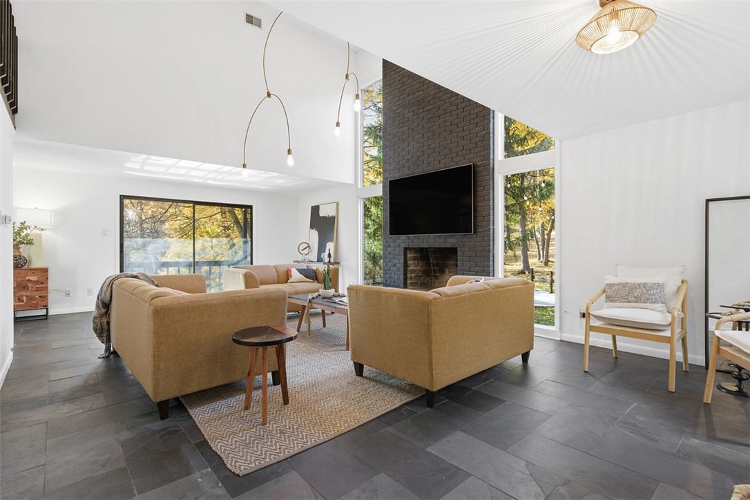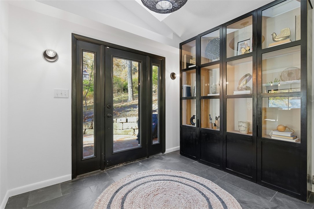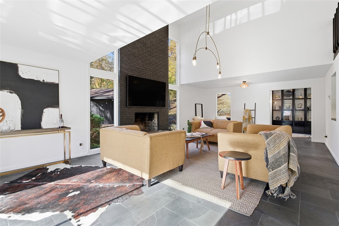This exceptional home was completely reimagined by Pittsburgh's own Leanne and Steve Ford in a striking contemporary-modern style. Their signature black-and-white palette is thoughtfully balanced with warm natural tones, and the exterior has been freshly painted to match the elevated aesthetic. The current owner has made a ton of upgrades and improvements of their own, resulting in a home that offers luxury, privacy, and style. Situated on a private 1.88-acre lot just minutes from Sewickley Village, Downtown Pittsburgh, and the Pittsburgh International Airport, this four bedroom home offers 2.5 beautifully updated baths and a home office with refined design throughout. Highlights include floor-to-ceiling windows, a dramatic fireplace, custom lighting, slate flooring, a spacious and heated two car garage, main floor laundry and a walk-in pantry. Designed for both everyday living and entertaining, the home features two "secret doors" that open to a generous bonus room - ideal as an additional bedroom or den - and the new pantry/laundry room. Easy access to everything Sewickley has to offer!