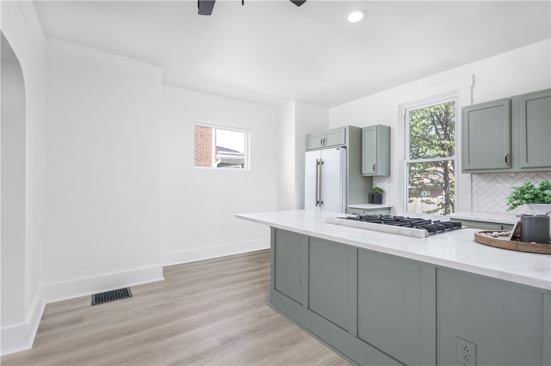 In the heart of an up-and-coming community in Beaver County, Pennsylvania, nestled on a quiet one-way street, stands a meticulously newly renovated 3-bedroom, 1.5-bathroom brick home that seamlessly blends timeless charm with modern sophistication. This solid brick residence, with a brand new roof, and central air, offers approximately1,500 square feet of thoughtfully designed living space, exuding curb appeal and inviting warmth. With its fresh updates, including modern Forno Cafe Series appliances, open-concept layout, and prime location in a revitalizing neighborhood, this home is a standout opportunity for homeowners looking to capitalize on Beaver County's growing appeal.