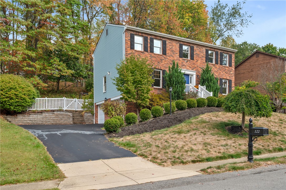 Welcome to 122 Rippling Brook Drive, a classic colonial in the sought-after Deer Valley neighborhood of Ohio Township. The inviting floor plan centers around a gleaming eat-in kitchen with tons of storage, a hidden laundry area, and walk-out access to the private patio with retractable awning. Formal dining and living rooms let in the morning sun, and a family room with brick fireplace provides a cozy place for entertaining or a night in. Upstairs, the primary bedroom features a spacious en suite with walk-in closet. Three additional bedrooms and a second full bath, all of generous size and plentiful closet space, complete the upper level. The finished basement is a perfect opportunity for a home gym or play area. Located on a no-outlet street in a sidewalk community just minutes from major roadways, this home offers both quiet comfort and convenience.