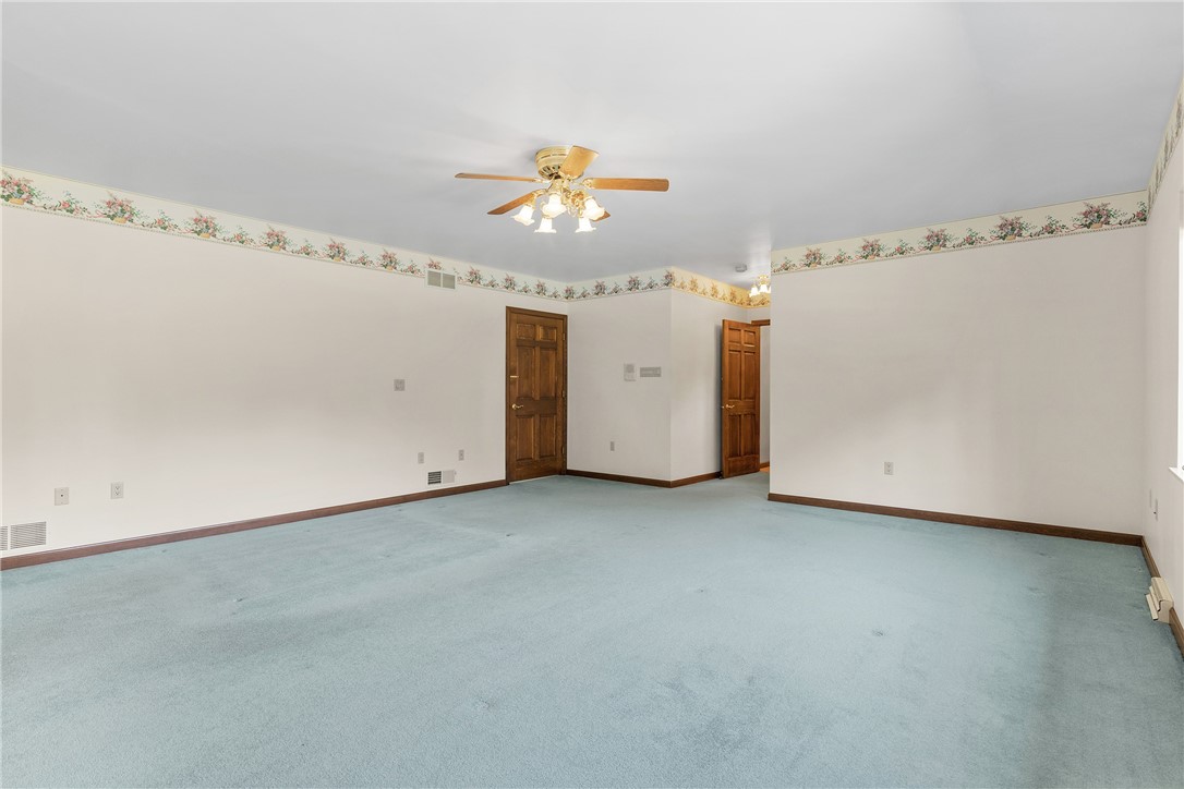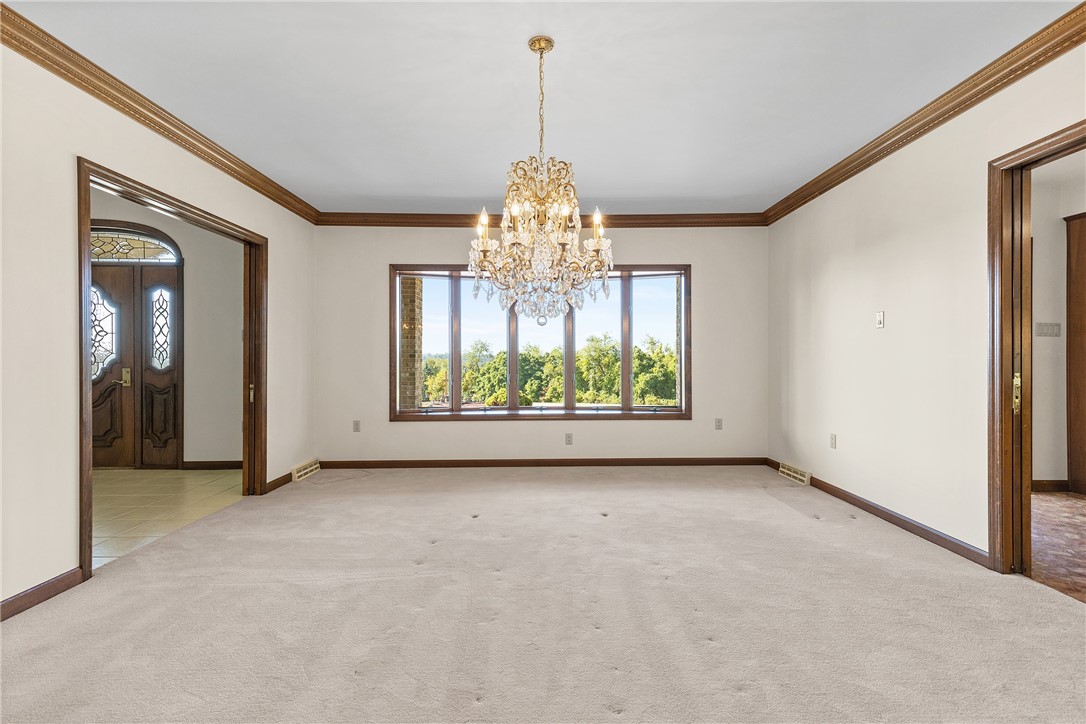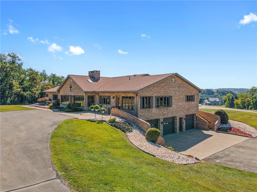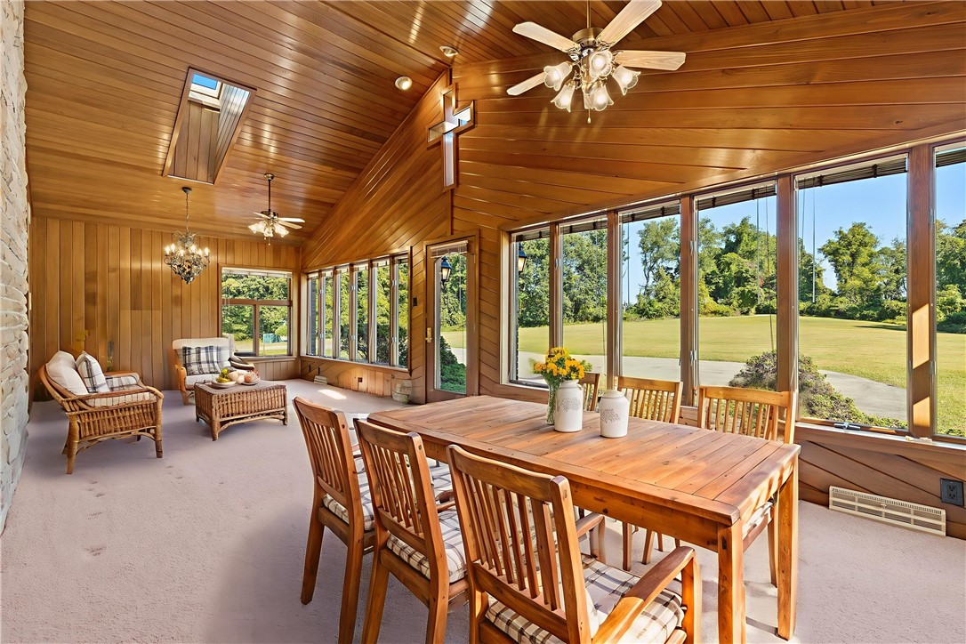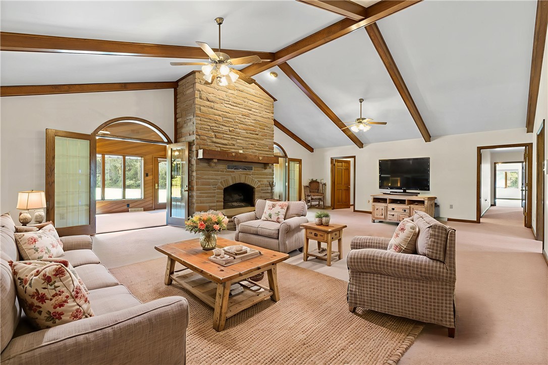 For the first time on the market, this extraordinary 5,000-square-foot custom-built ranch offers a rare opportunity to own a private estate of exceptional scale and character. Perched high atop a secluded hill at the end of a long private drive, the residence commands sweeping views of nearly 27 pristine acres, offering an unmatched sanctuary of space, serenity, and sophistication. The home is a masterwork of thoughtful design, blending gracious formal spaces with warm, inviting rooms for everyday living. The expansive kitchen features dual dining areas alongside a formal dining room, offering seamless venues for both intimate gatherings and grand entertaining. A formal living room sets the tone with classic refinement, while the soaring ceilings of the family room, anchored by a commanding stone fireplace, invite moments of connection and comfort. A stunning four-seasons sunroom, bathed in natural light, extends the home’s living experience year-round. Four spacious bedrooms offer private retreats, while a hidden room reveals one of the estate’s most remarkable features: an underground shooting range, accessible via two discreet, secret entrances, a unique amenity for the discerning buyer seeking something truly extraordinary.
