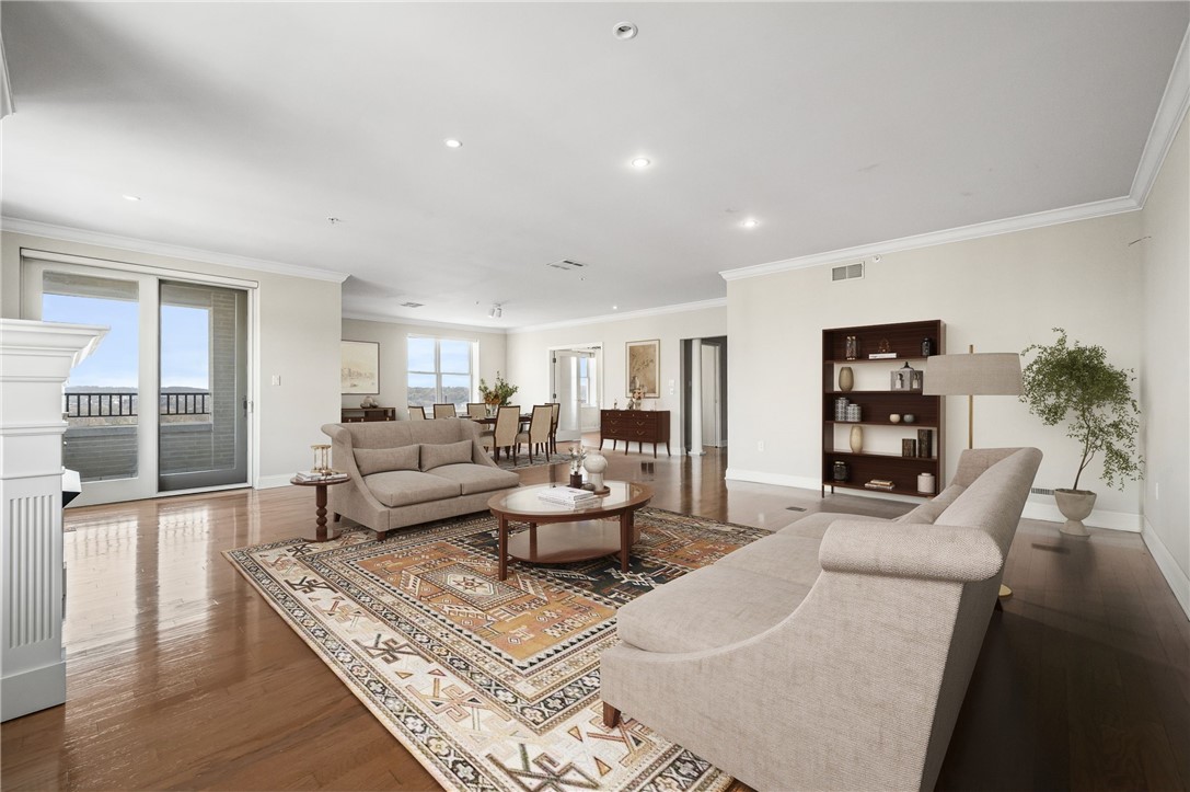 Welcome to refined urban living at The Madison, one of Pittsburgh's most prestigious and sought-after condo communities. This spacious three-bedroom, two-and-a-half-bath residence offers a combination of comfort, elegance, and convenience in the heart of Oakland, steps from renowned universities, leading medical centers, several world-class museums, and a vibrant dining scene. A welcoming entry opens into expansive living and dining areas, thoughtfully designed for both everyday living and entertaining. Large windows invite abundant natural light while offering picturesque views of the surrounding neighborhoods and the covered balcony is the ideal spot for relaxing outdoors without ever leaving the comfort of your home. The well-appointed kitchen features generous cabinet and counter space, along with kitchen island seating. The primary suite serves as a private retreat, complete with a generous walk-in closet and a beautiful, well-equipped en suite bath. Two additional bedrooms provide flexibility for guests, a home office, or additional living space, while a second full bath and a convenient powder room enhance functionality. Additional highlights include in-unit laundry, ample storage, and secure parking. Residents of The Madison enjoy premium amenities such as a 24-hour doorman, valet parking, secure entry, and attentive building maintenance. This residence offers the perfect blend of luxury, security, and urban convenience.