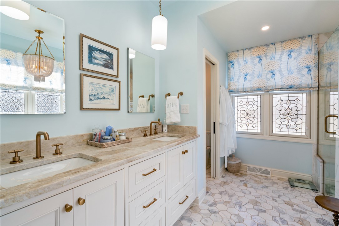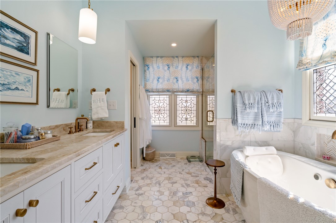 This property, located at The Ridge at Sewickley Heights Manor is absolutely stunning. With three levels of high-end renovation, it showcases exquisite design elements that elevate the living experience. The large gourmet kitchen is ideal for gatherings, and the two story great room with gas fireplace ads a cozy yet elegant touch, particularly with its seamless access to the large deck for entertaining. The main level primary suite is like a luxurious retreat, featuring a wall of built-ins, a soaking tub, a zero entry shower for ease and comfort. The screened deck off of the suite is a lovely touch for enjoying morning coffee or winding down in the evening with a glass of wine. Having a well-lit office with glass privacy doors is a thoughtful addition, ensuring a productive work environment. The lower level offers a second family room that leads to a patio with a covered outdoor theatre. Overall, this home boasts high-end finishes that create a cohesive and inviting atmosphere.