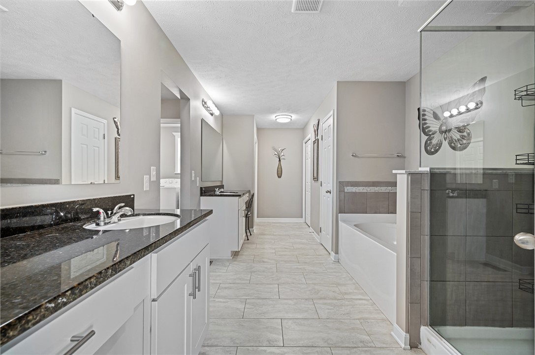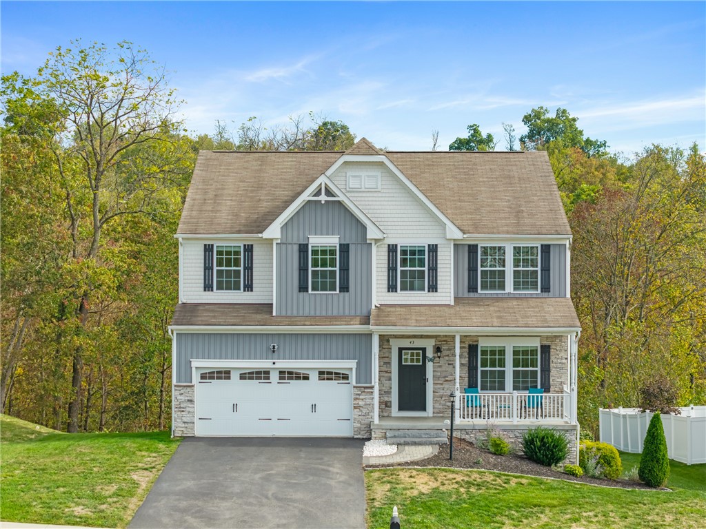 Welcome to 43 Trotter Lane, a beautifully-maintained home in the Maronda Farms neighborhood! Step inside to find an open and inviting floor plan featuring a spacious living room seamlessly connected to a stunning eat-in kitchen with a large island, granite countertops, stainless steel appliances, a stylish tile backsplash, and a walk-in pantry. A private home office off of the entry, a convenient half bath, built-in mudroom bench, and direct access to the brand new deck round out the main level. Upstairs, the luxurious primary suite offers a spa-inspired bath with a soaking tub, separate shower, and dual vanities, plus a walk-in closet with direct access to the laundry room. Three additional bedrooms and a full hall bathroom complete the upper level. The walk-out basement provides excellent storage and future expansion potential, plus walk-out access to the new finished concrete patio. Ideally located just minutes from the airport, shopping, and major highways for an easy commute.