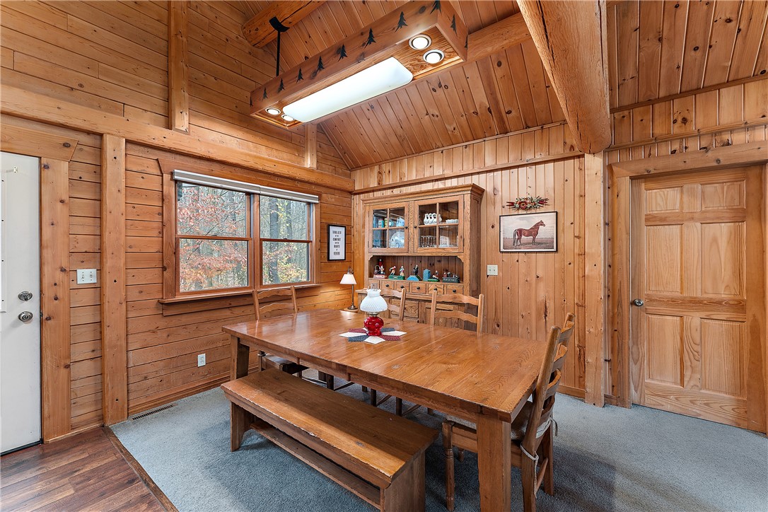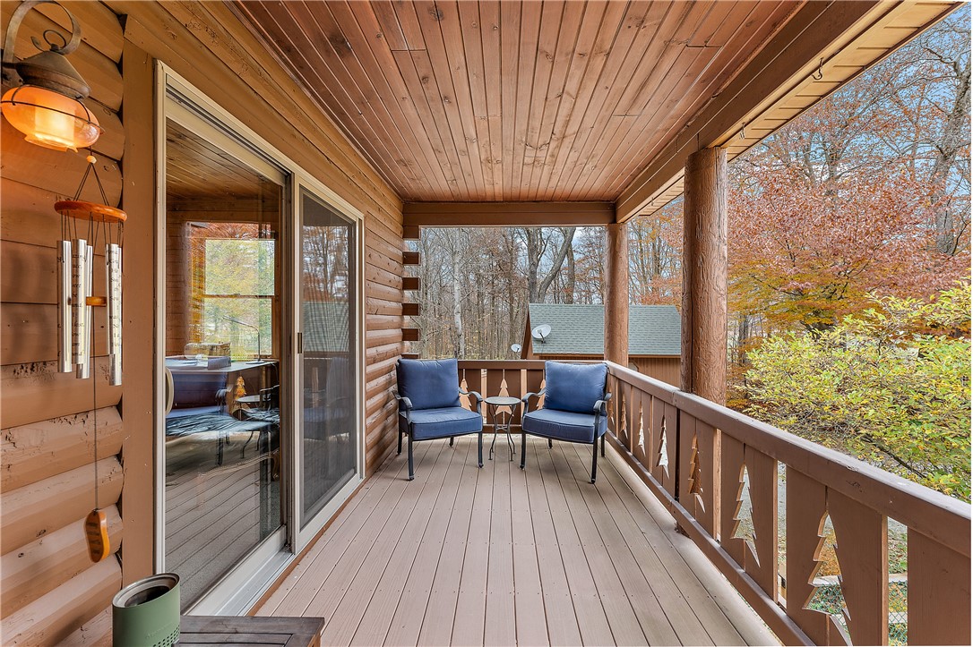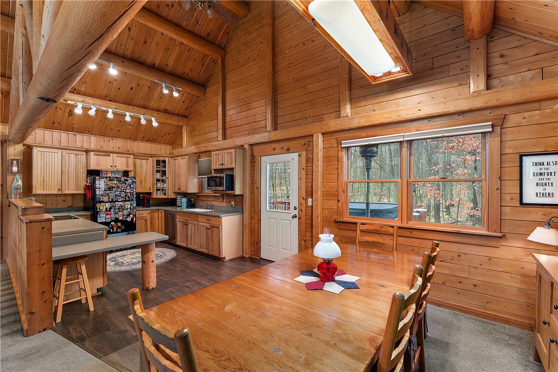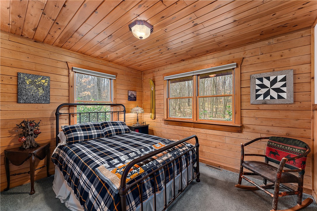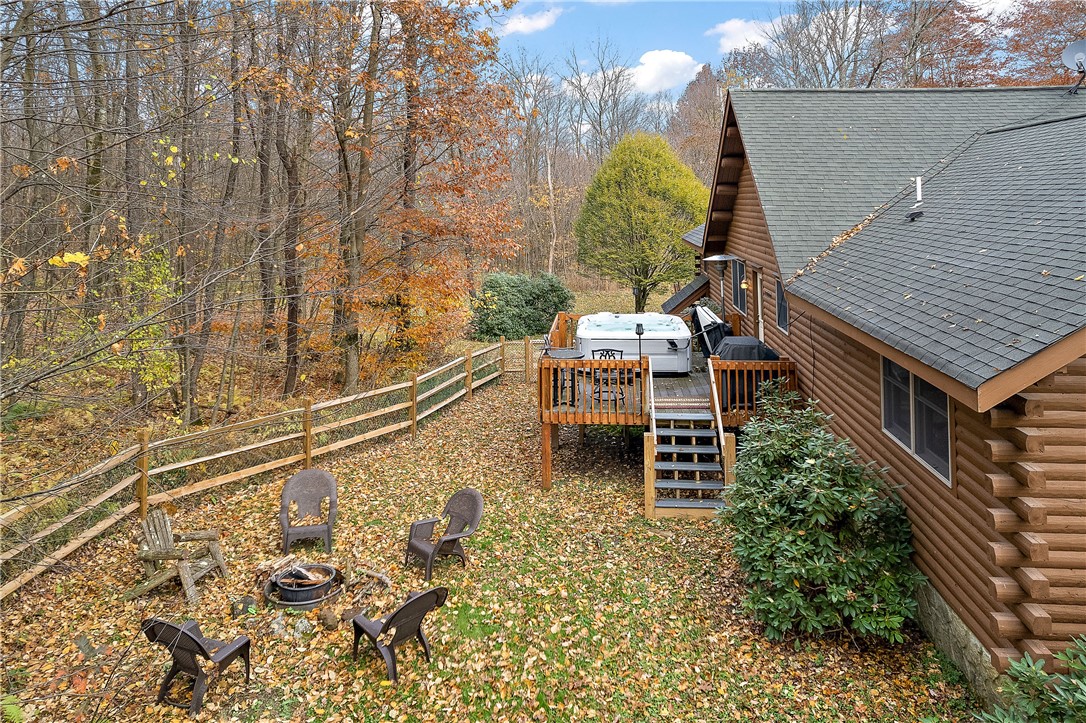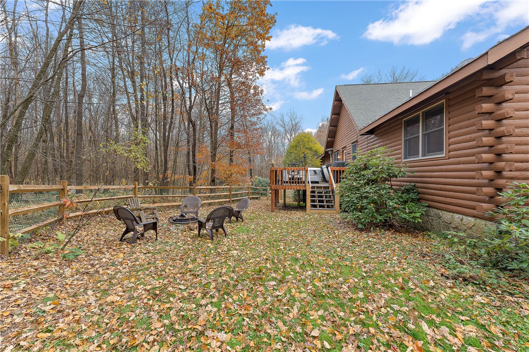 Enjoy the serene beauty of the Laurel Highlands just minutes from the Hidden Valley and Seven Springs Ski Resorts! This remarkable log cabin is just steps from the Laurel Highlands Hiking Trail and the snowmobile trails, making it a haven for outdoor enthusiasts. Inside you'll find soaring cathedral ceilings, exposed beams, and a grand stone fireplace that creates a dramatic focal point. Expansive windows fill the open living space with natural light and forest views. The home offers four spacious bedrooms and three full baths, including a tranquil en suite primary retreat. The finished lower-level provides an ideal space for relaxing. Step outside to the private deck with a hot tub overlooking the large, fenced-in yard. A two-car garage and the large detached garage offer ample storage. Modern updates include newer HVAC system and hot water heater. Whether as a full-time residence or mountain getaway, you can experience the best of Western PA's mountain lifestyle in style and comfort.
