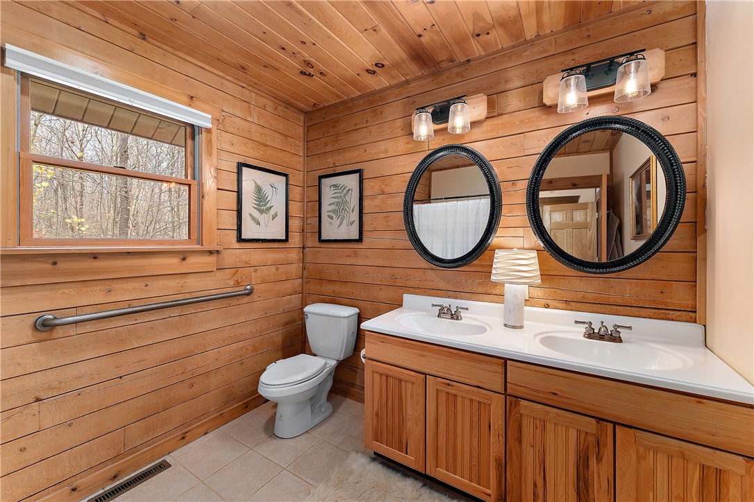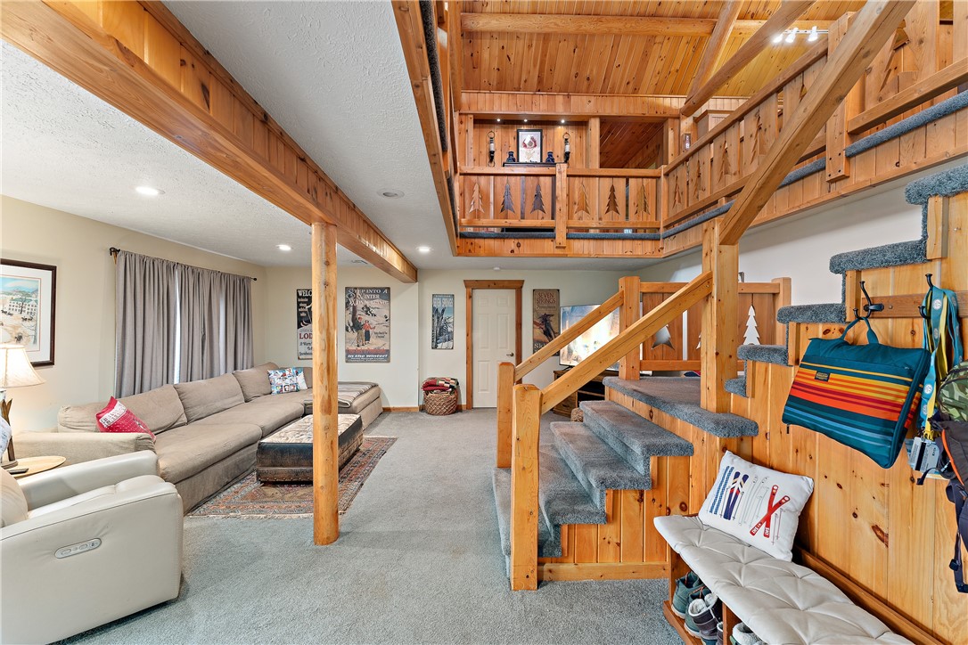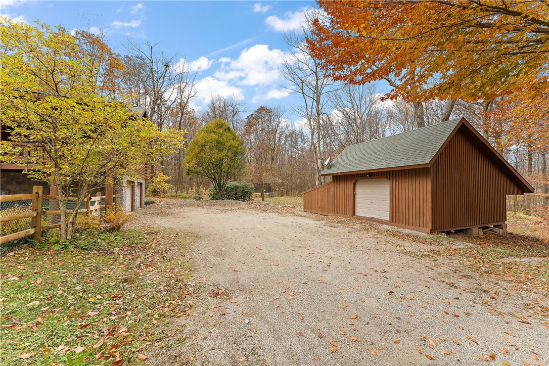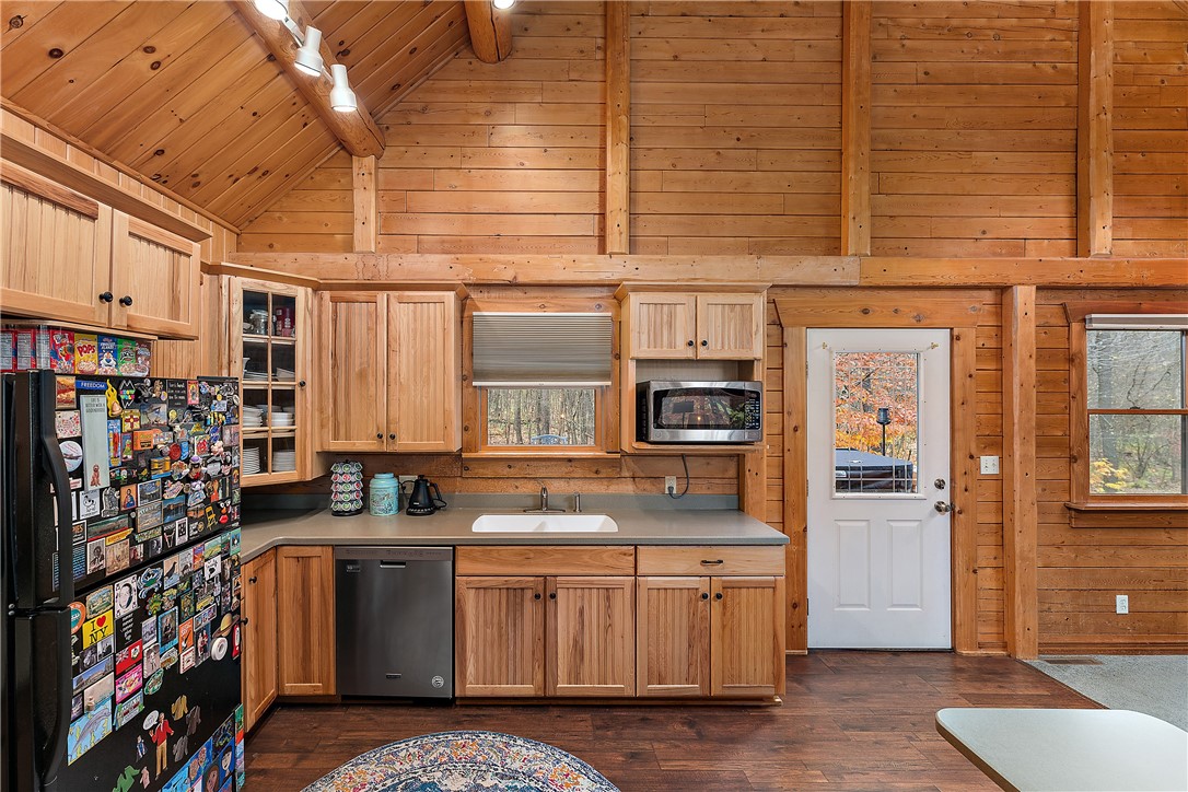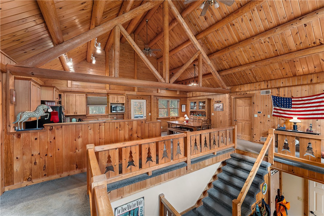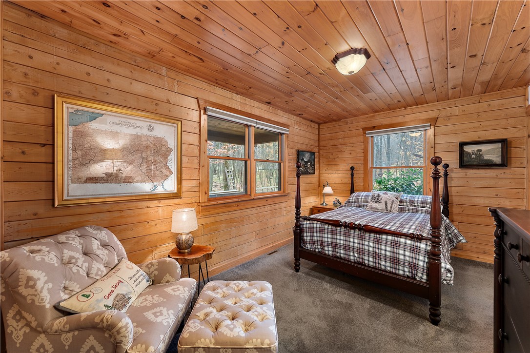 Enjoy the serene beauty of the Laurel Highlands just minutes from the Hidden Valley and Seven Springs Ski Resorts! This remarkable log cabin is just steps from the Laurel Highlands Hiking Trail and the snowmobile trails, making it a haven for outdoor enthusiasts. Inside you'll find soaring cathedral ceilings, exposed beams, and a grand stone fireplace that creates a dramatic focal point. Expansive windows fill the open living space with natural light and forest views. The home offers four spacious bedrooms and three full baths, including a tranquil en suite primary retreat. The finished lower-level provides an ideal space for relaxing. Step outside to the private deck with a hot tub overlooking the large, fenced-in yard. A two-car garage and the large detached garage offer ample storage. Modern updates include newer HVAC system and hot water heater. Whether as a full-time residence or mountain getaway, you can experience the best of Western PA's mountain lifestyle in style and comfort.